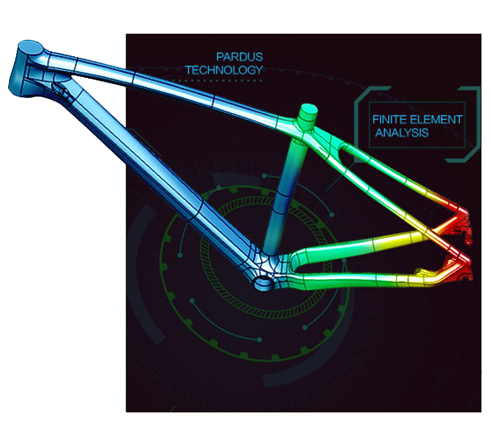 有限元數值分析是提升PARDUS碳纖維自行車(chē)産(chǎn)品質量最有效的手段之一,PARDUS通過與中國航空研究院合作研發,利用數學近似的方法,對碳纖維材料真實物理系統(幾何和載荷物理工況)進行模拟,同時利用簡單而又相互作用的元素,用有限數量的未知量去逼近無限未知量的真實系統。